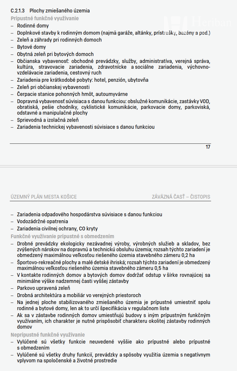 Pozemok je v novom územnom pláne mesta Košice vedený ako: „plochy zmiešaného územia“ s prípustným funkčným využívaním na rodinné domy, doplnkové stavby k rodinným domom, zeleň a záhrady pri rodinných domov, bytové domy,.....