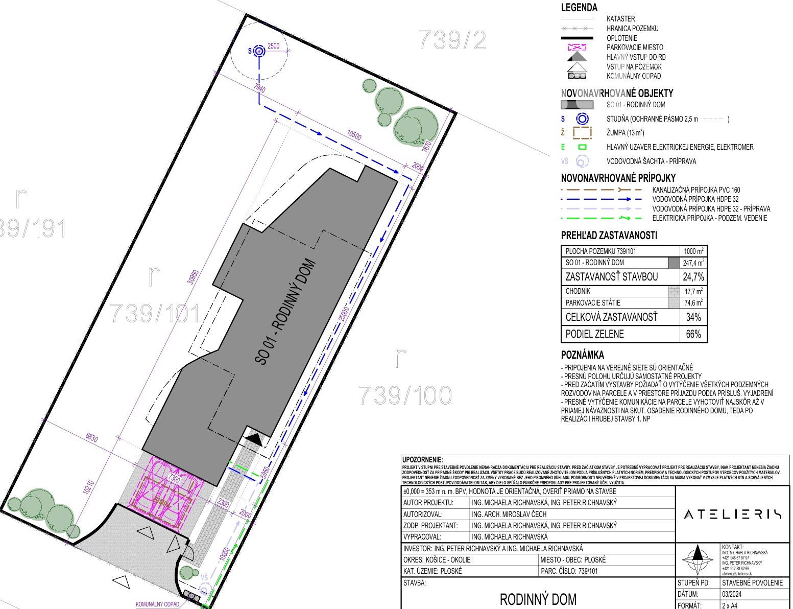 Zastavanosť: 24,7 % z pozemku