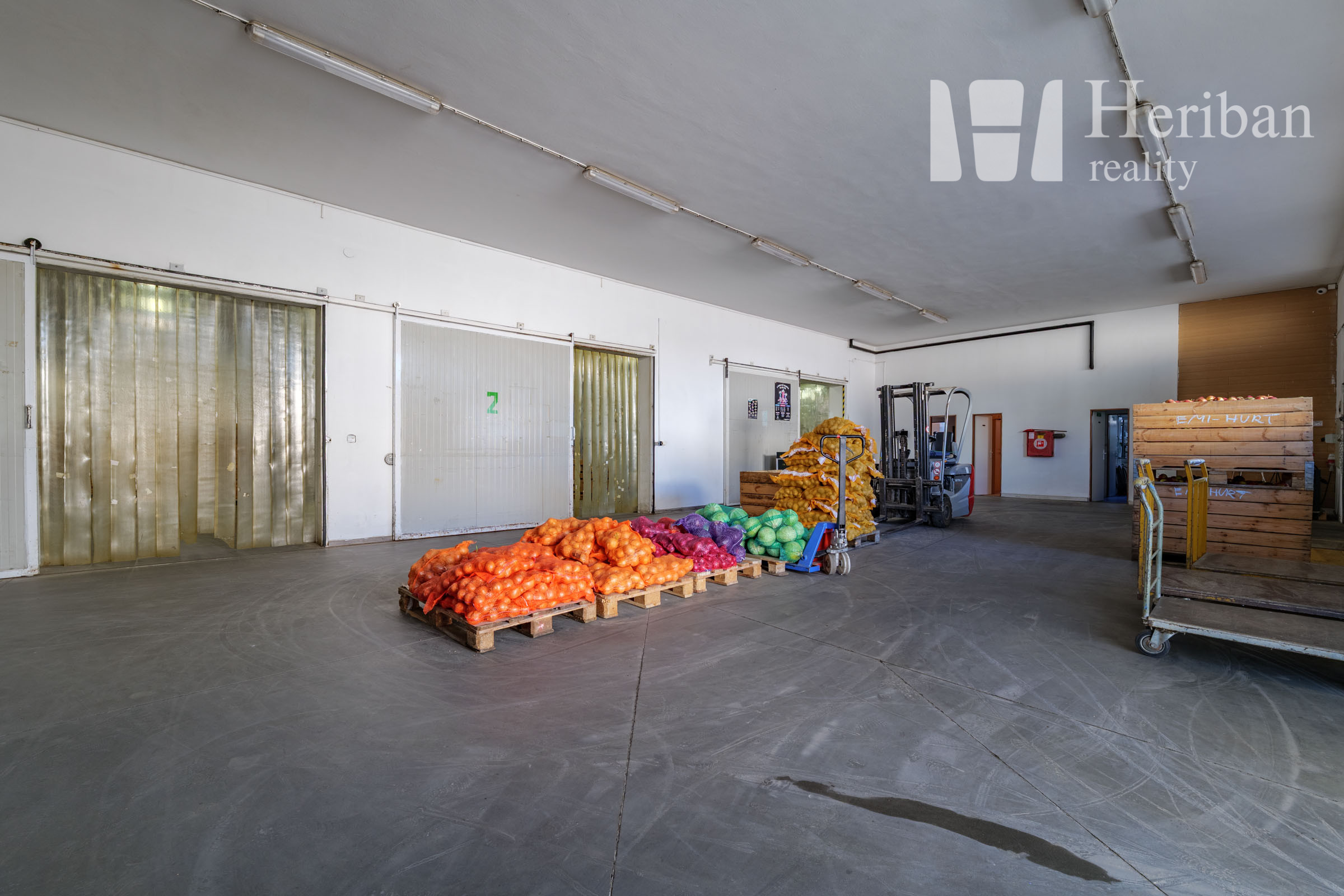 -3*sklad ( 2 chladené sklady na 3-5stupňov a 5-7 stupňov, 1 nechladený sklad), expedícia, 2 kancelária, pokladňa, 2x* šatňa s kúpelňou a WC, kúpelňa s tech.miestnosťou, denná miestnosť, sklad obalov, rampa