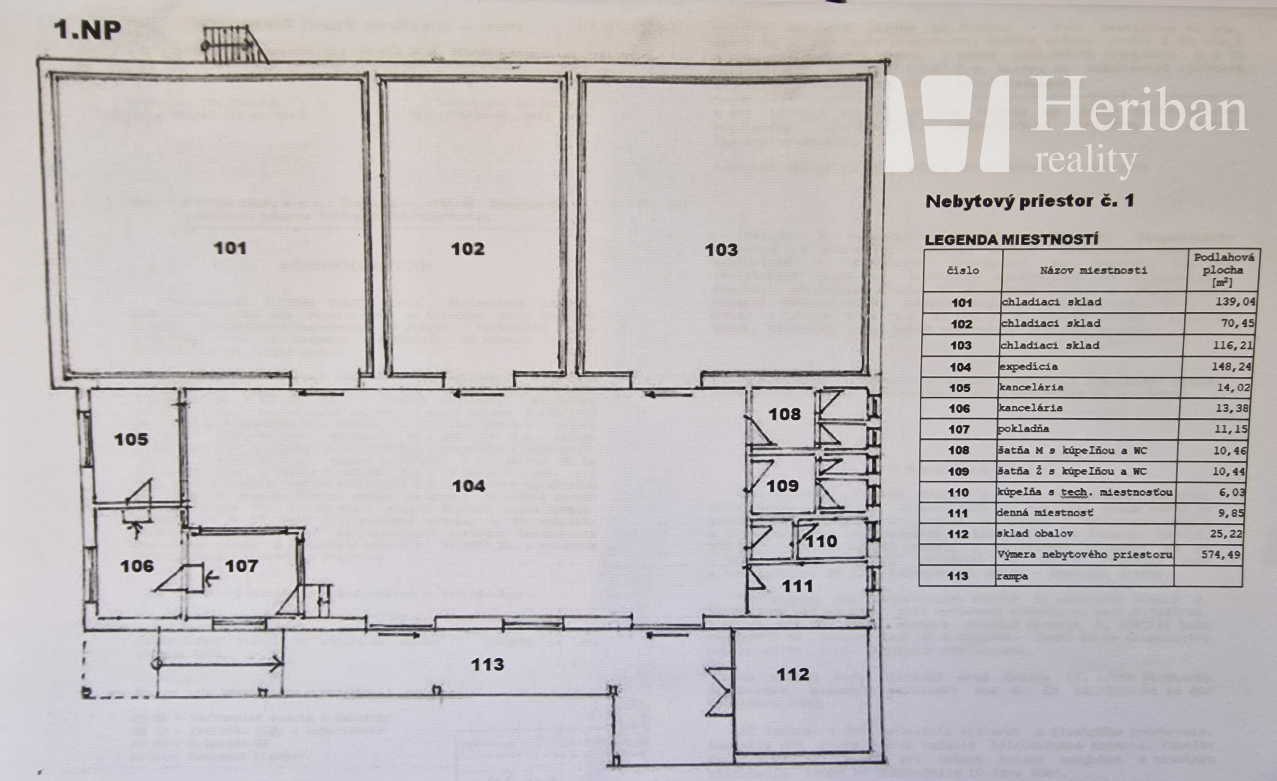 -podlahová plocha bez plochy rampy je 574m2. Rampa má 48,6m2.