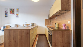 -kuchynská časť prepojená s izbou s výstupom na terasu