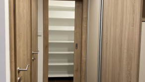 - na chodbe: vstavaná vešiaková skriňa s botníkom, predsieňová vešiaková stena s policami