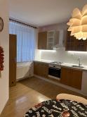 - v kuchyni- kuchynská linka, varná doska, vstavaná rúra, umývačka riadu, chladnička s mrazničkou, stôl a 4 stoličky
